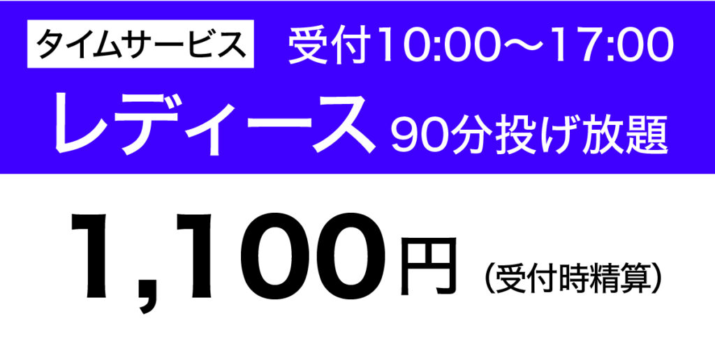 ※投げ放題は待ち組が発生した時点で、受付時間の早い方から終了となります。投球は21:50までとなります。